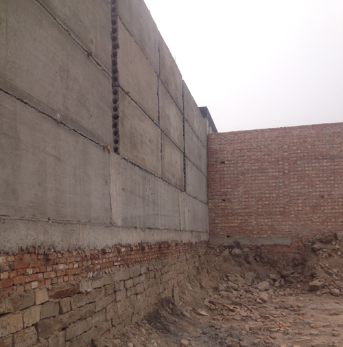 在黃粱夢魏志強原有的毛石基礎(chǔ)上,砌磚找平打圈梁,然后組裝墻板住宅。 黃粱夢村的一種建房習(xí)慣是在地下砌筑毛石,這樣的房子在被水泡時,不會起堿發(fā)潮。但同樣,這樣的房子抗震性值得懷疑。